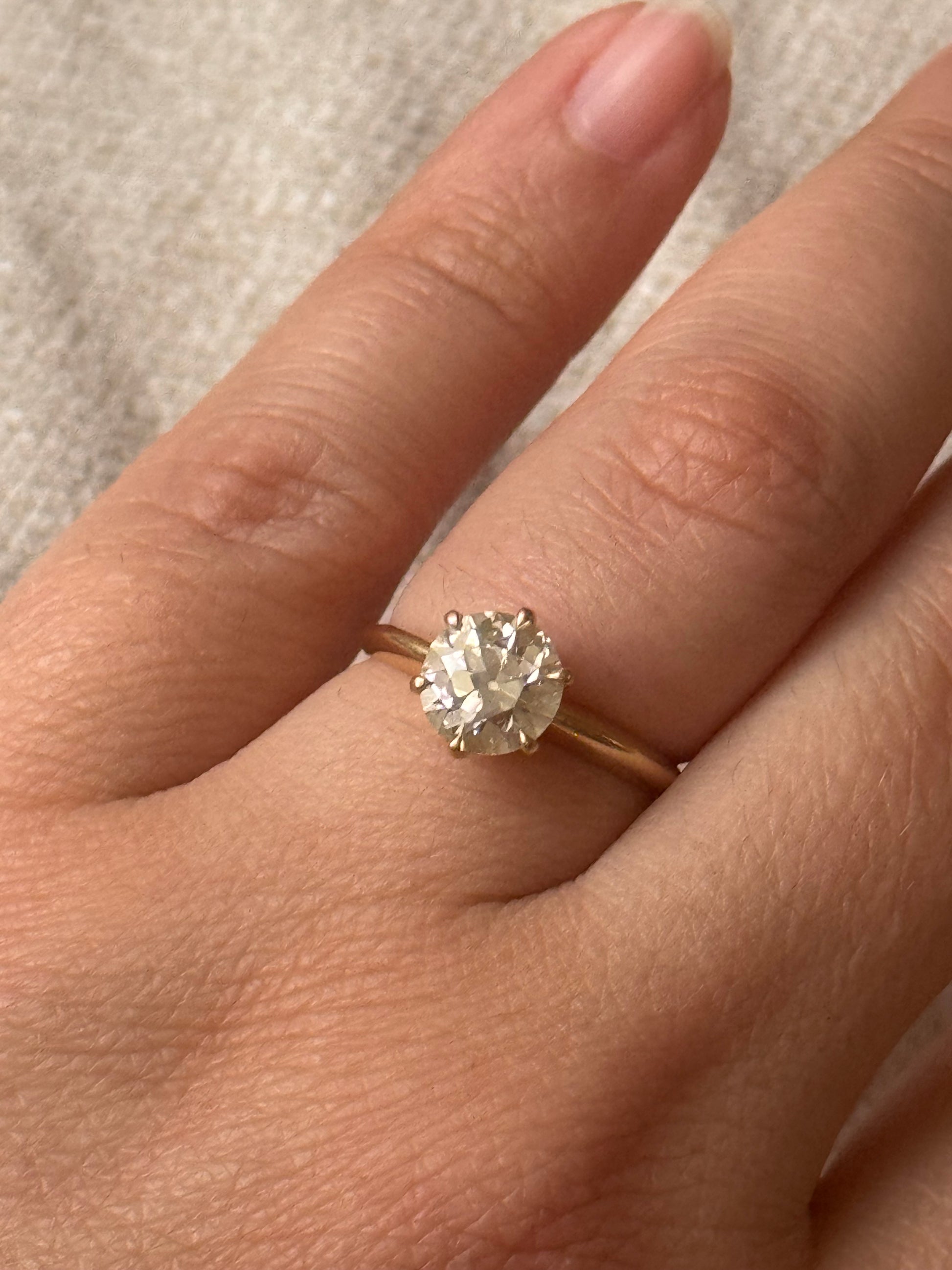 14k yellow gold Old european cut diamond 1.51cts Q-R VS1 GIA certed 7.42x7.52x4.37mm size 6.5